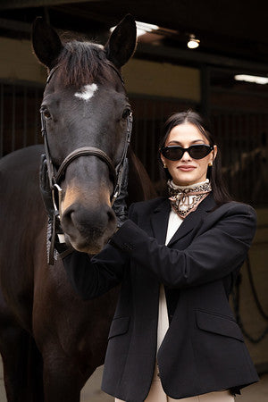 Elevate your ride with the Marilyn – luxury oval sunglasses made with the highest quality acetate. They are sturdy, stylish, and built for bold equestrian women who demand performance, style, and durability. Cavallo Eyewear is the only eyewear brand created specifically for equestrians, with every detail tailored to life in the saddle and at the barn.